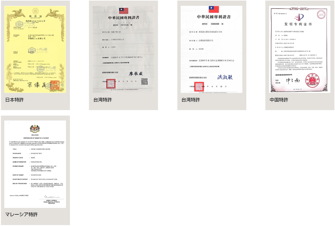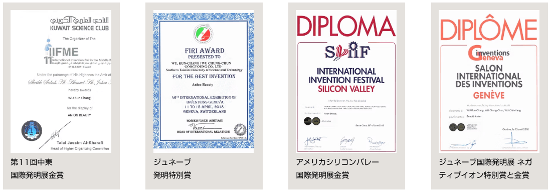 同年ジュネーブ博覧会に招聘され、ジュネーブ国際発明展でマイナスイオン特別賞と金発明賞のダブル受賞を果たしました。中国、台湾、日本、マレーシアで特許を含む証明書を取得しております。